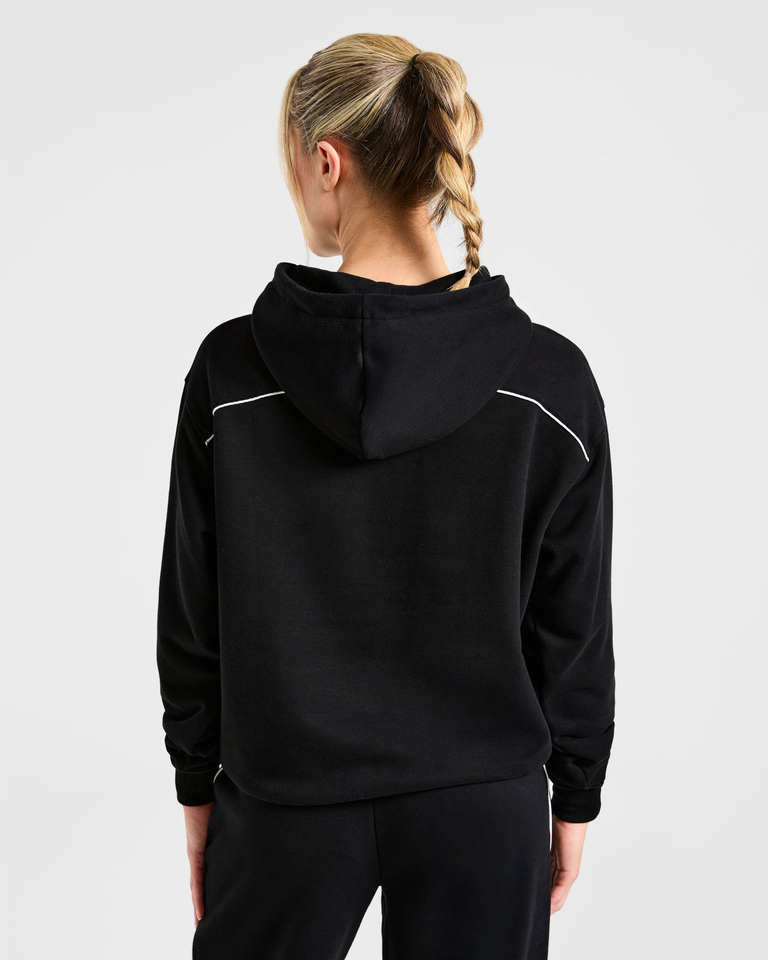ชุดวอร์มแบบสองชิ้นสีดำคอเต่า แขนยาว สำหรับผู้หญิง ออกกำลังกายและสตรีทแวร์ ชุดฮู้ดดี้และกางเกงจ็อกเกอร์ ขายส่งแบบกำหนดเองได้