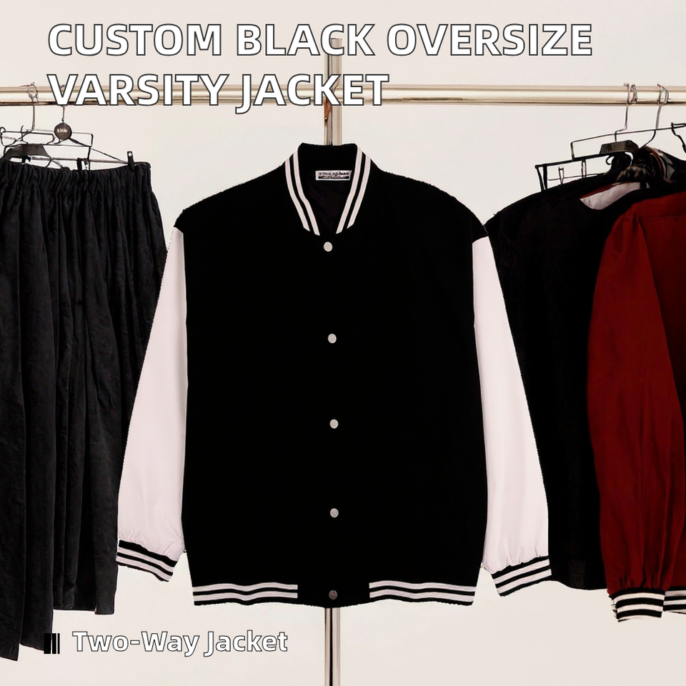 เสื้อกีฬาเบสบอลทรงหลวมสีดำขนาดใหญ่เสื้อแจ็กเก็ตทีมตัวแทนแขนเสื้อปักหนังสำหรับฤดูใบไม้ผลิ
