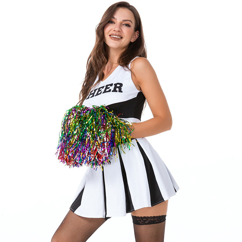 ชุดยูนิฟอร์มเชียร์ลีดเดอร์สำหรับวัยรุ่นหญิงชุดแข่งขันทีมสองชิ้นชุดกีฬาโรงเรียนสีดำและสีขาวแบบกำหนดเอง