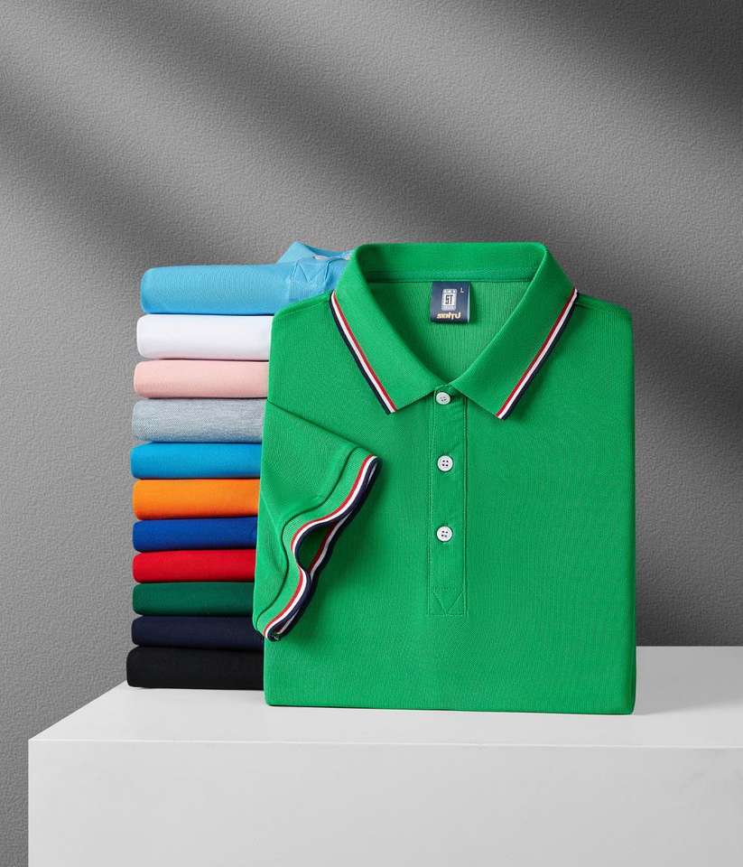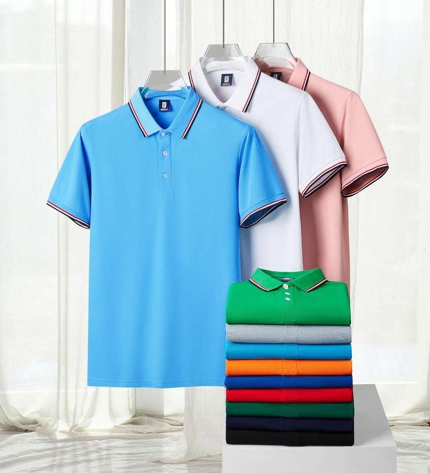 เสื้อโปโลของผู้ชายผ้าโพลีเอสเตอร์พิมพ์ลายปักโลโก้ออกแบบได้ตามต้องการ