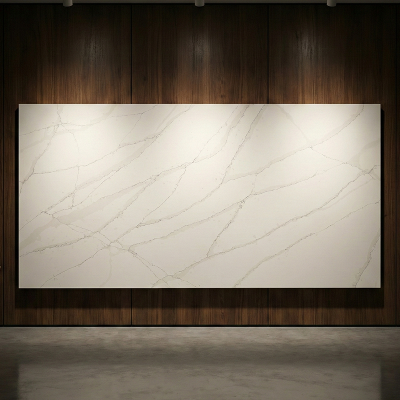 เคาน์เตอร์ควอตซ์ลายแคลคาตต้า นูโว สีเทาเข้มแบบกำหนดเองสำหรับขายส่ง เหมาะสำหรับเคาน์เตอร์ครัว เกาะกลางห้องครัว ห้องน้ำ และตู้ห้องน้ำ