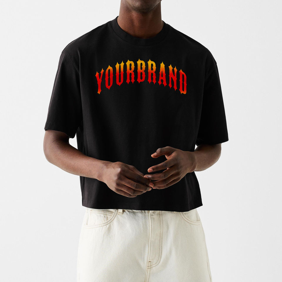 เสื้อยืดครอปทรงเข้ารูปสำหรับผู้ชายเสื้อยืดผ้าฝ้ายคลาสสิกแขนสั้นคอกลมผ้าฝ้ายเฮฟวีเวต