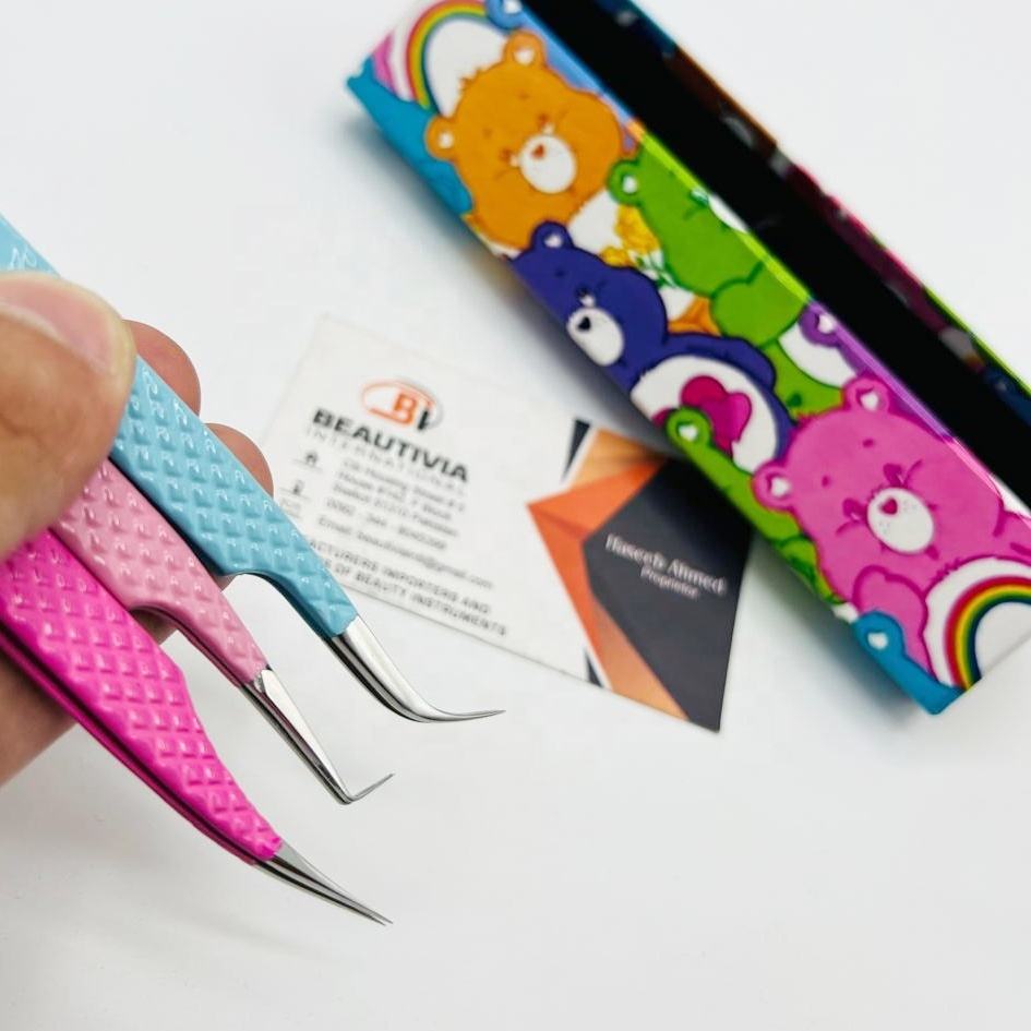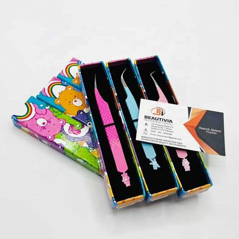 Wholesale Custom Brand NAME Eyelash Extension Tweezers New Teddy Bear Design Lash Tweezers with Custom Box Packing Small MOQ