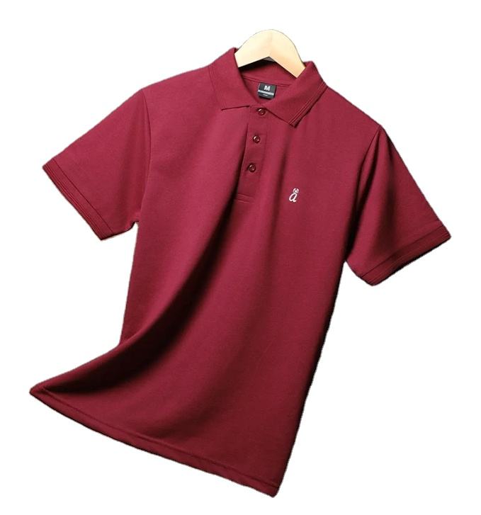 เสื้อโปโลผู้ชายคลาสสิกทนทานเสื้อใส่สบายกันรอยยับผ้าสแปนเด็กซ์ผ้าไหมถักย้อมสีย้อมสีเข้มเรียบ