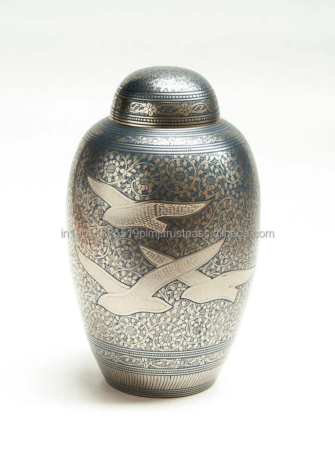 โกศบรรจุอัฐิทองเหลืองแบบอเมริกันสั่งทำขายส่งสำหรับมนุษย์และสัตว์เลี้ยง ขนาด 10 นิ้ว ผิวสีดีบุก ของที่ระลึกงานศพ