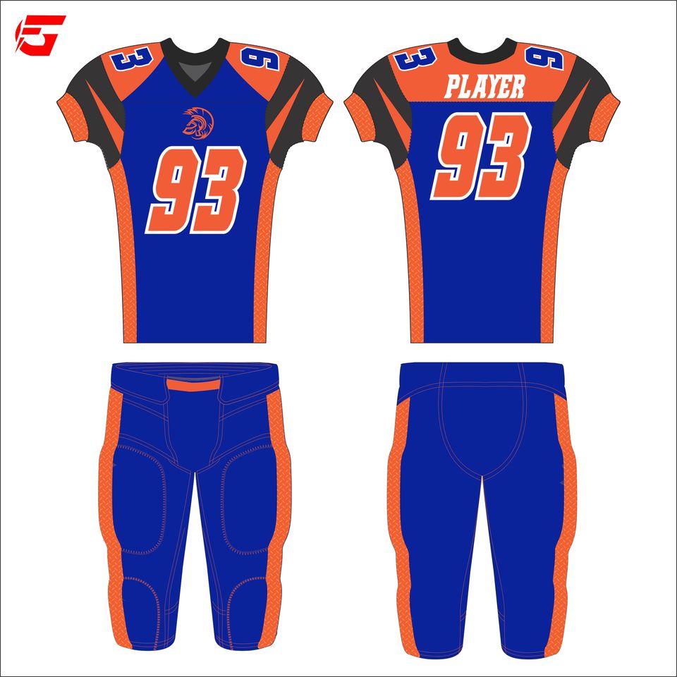 ชุดยูนิฟอร์มอเมริกันฟุตบอลแบบระบายอากาศสั่งทำขายส่ง เสื้อและกางเกงแบบซับลิเมชั่น ชุดทีม ผู้ผลิตและจำหน่าย OEM แบบสั้น