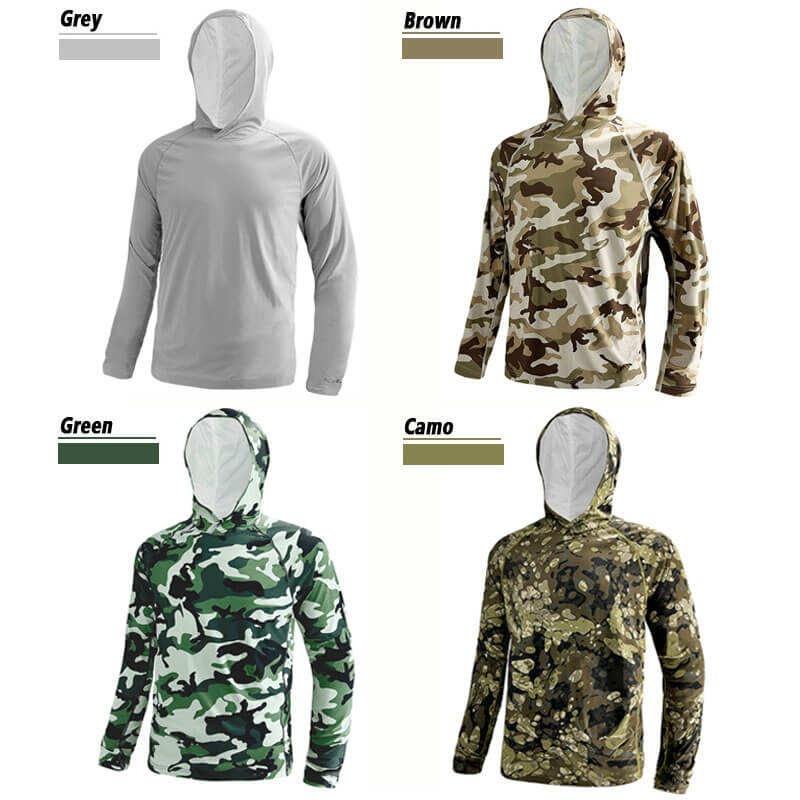 เสื้อผ้าตกปลาแบบระบายอากาศสั่งทำขายส่ง พร้อมหน้ากากปิดจมูก แขนยาว UPF 50+ เสื้อฮู้ดดี้และเสื้อเชิ้ตสำหรับกีฬากลางแจ้ง