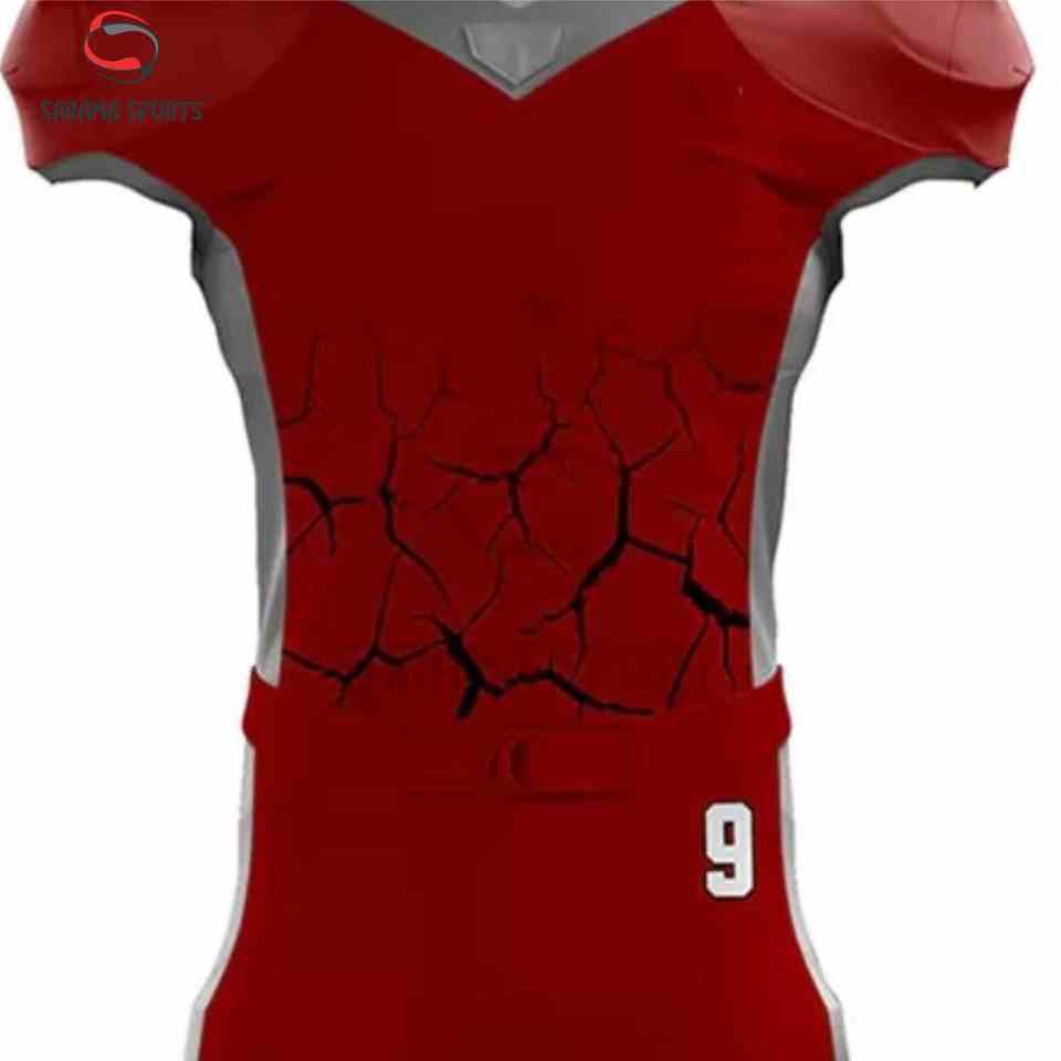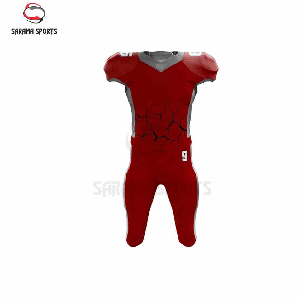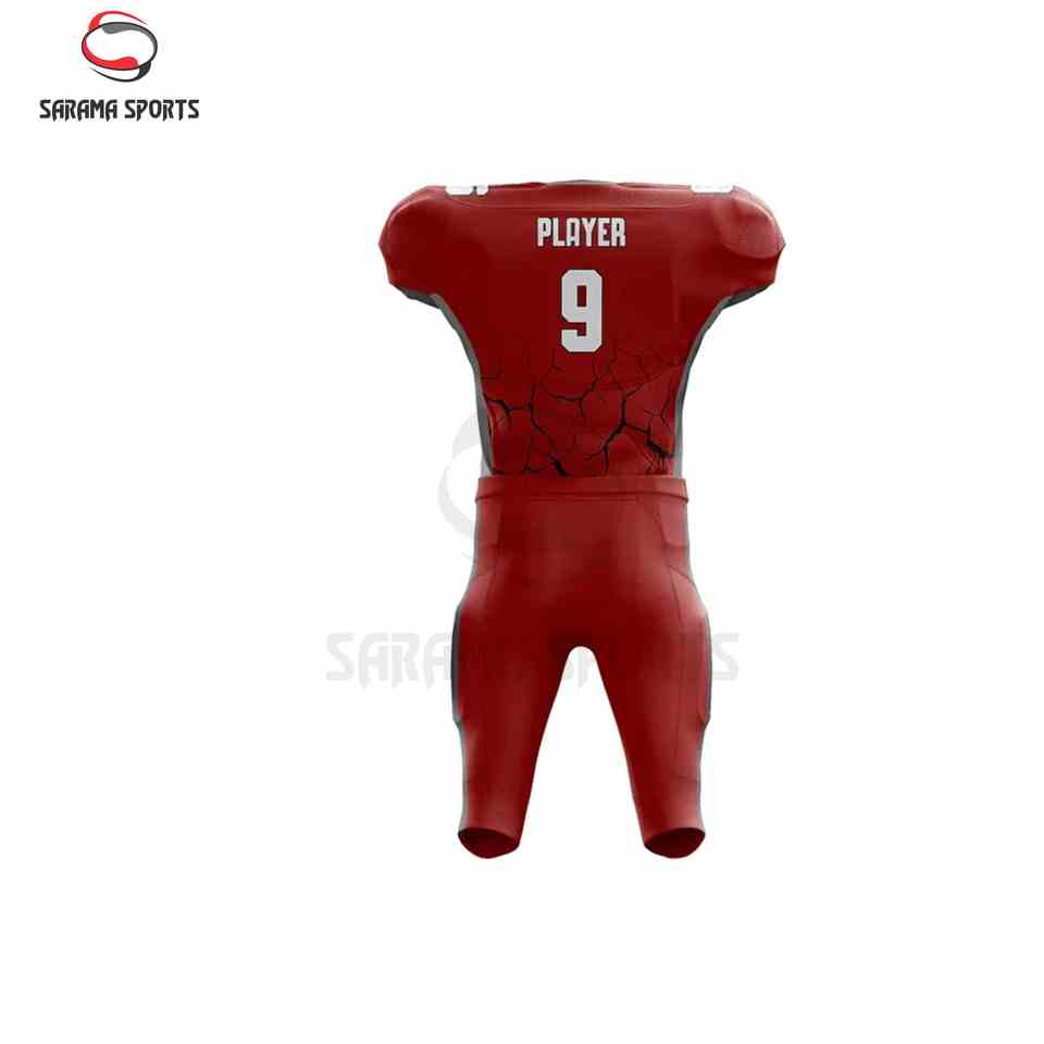 ชุดยูนิฟอร์มอเมริกันฟุตบอลแบบสั้นสั่งทำขายส่ง ระบายอากาศได้ดี พร้อมงานปักลายแบบ Tackle Twill พิมพ์ลายแบบ Sublimation และงานปักแบบสกรีนตามสั่ง