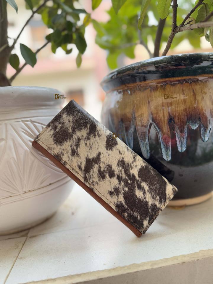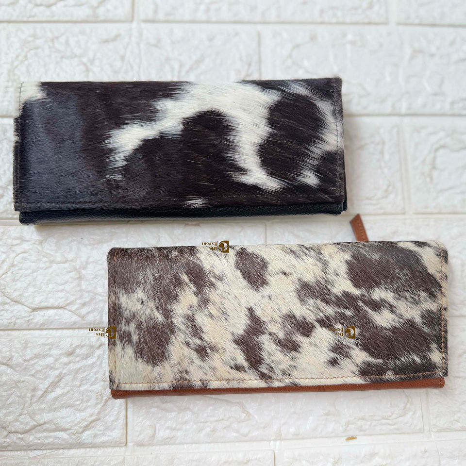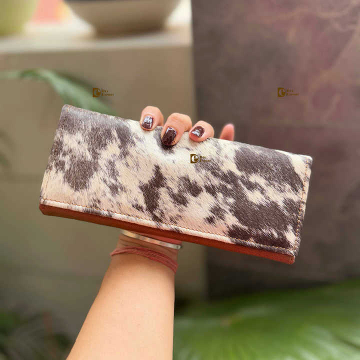 กระเป๋าคลัทช์หนังวัวสีน้ำตาลสำหรับผู้หญิงกระเป๋าสตางค์หนังขนหนังวัวสีน้ำตาลสั่งทำ