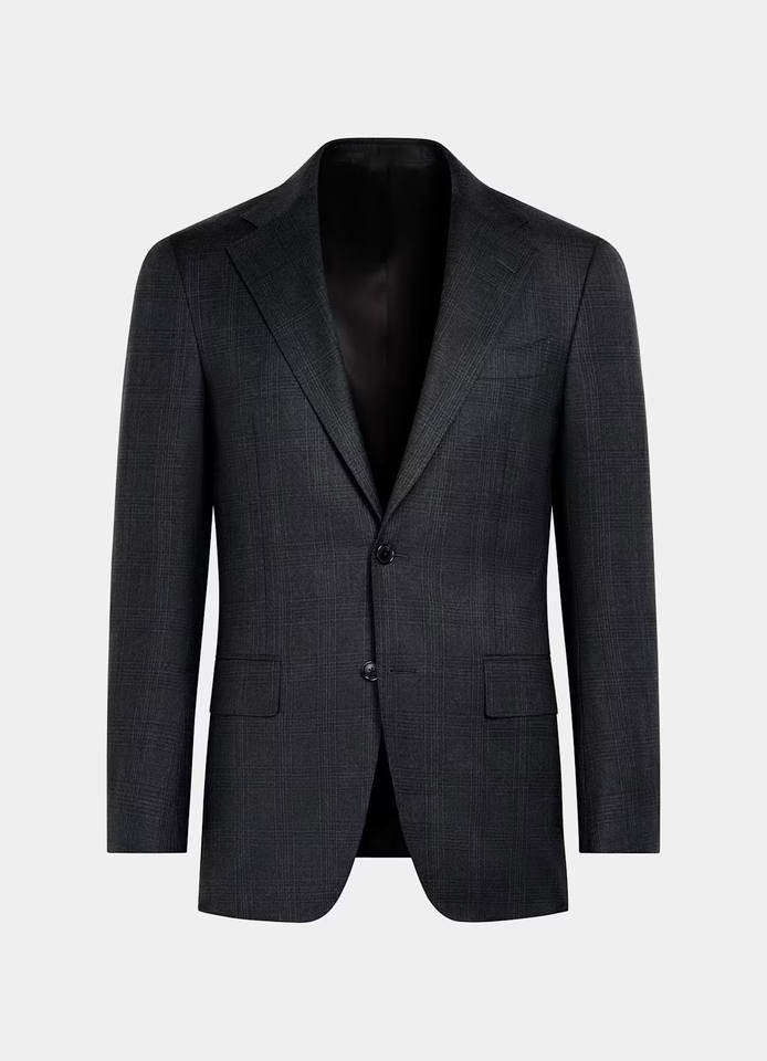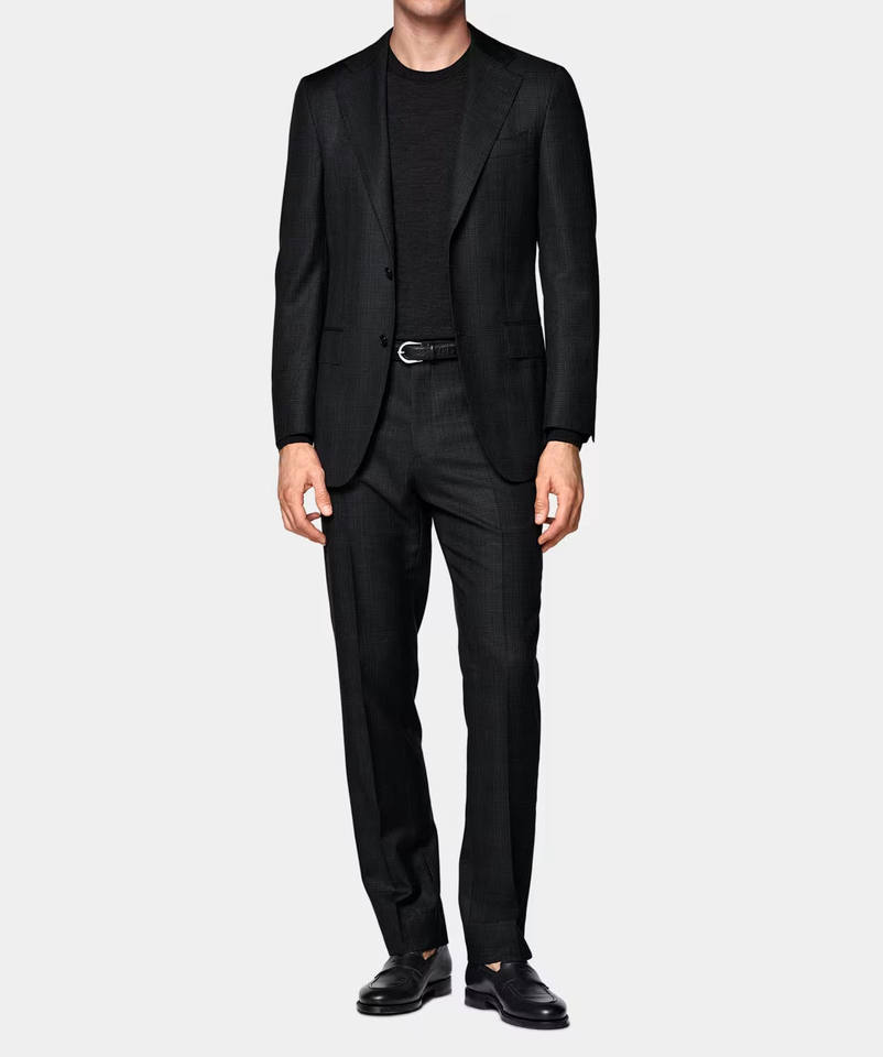 ชุดสูทธุรกิจสั่งตัดขายส่ง แขนยาว สีเทาเข้ม ลายสก็อต สำหรับผู้ชาย เสื้อสูทและกางเกงทรงเข้ารูปทันสมัย ลายสก็อต