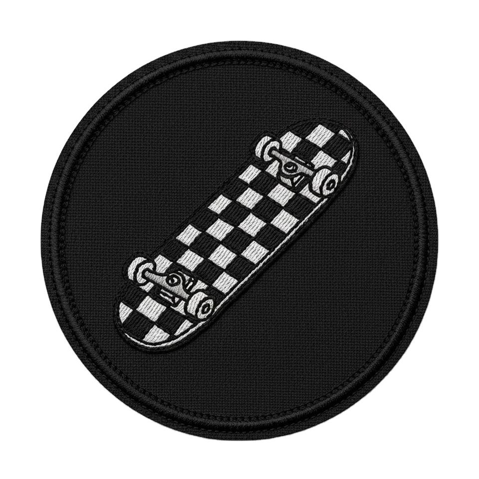 Wholesale Custom Checkered Skateboard Embroidered Patch Iron On Round Applique Badge For Jackets Bulk Garment Sew On Accessories