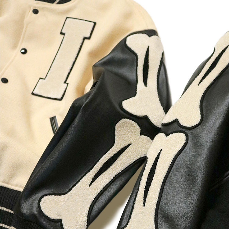 เสื้อแจ็กเก็ตเบสบอลผ้ากำมะหยี่ปักลายสำหรับผู้ชายเสื้อแจ็กเก็ตทีมโรงเรียนนักศึกษาหนังแฟชั่นออกแบบได้ตามต้องการ