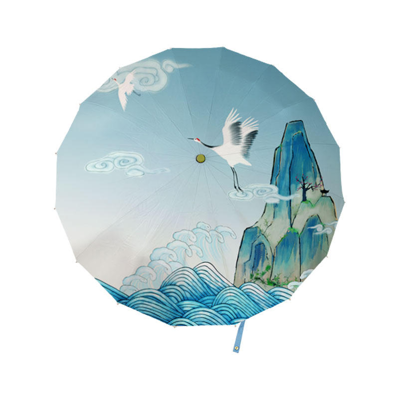 ร่มพับอลูมิเนียมกันรังสียูวี 16 ซี่ แบบสั่งทำขายส่ง สไตล์จีนคลาสสิก สำหรับเดินทาง กันลม กันฝน ด้ามไม้