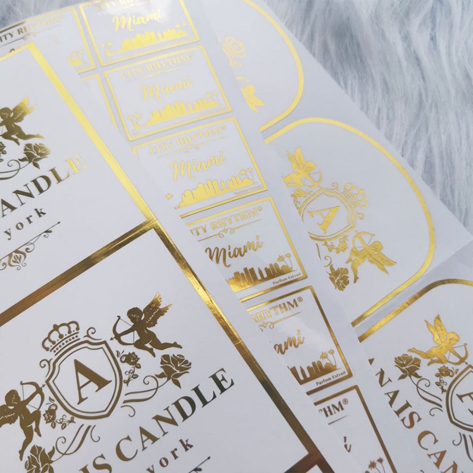 ฉลากกันน้ำแบบใสพิมพ์ลายทองคำเปลวสำหรับขนม อาหารสัตว์เลี้ยง ขนมขบเคี้ยว ขนมปัง น้ำตาล น้ำมันมะกอก รับผลิตตามสั่งขายส่ง