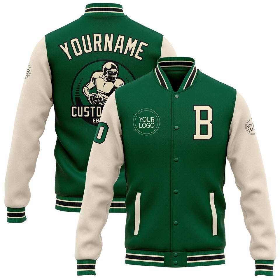 แจ็คเก็ตแฟชั่นแบบวาร์ซิตี้ทรงบอมเบอร์สีขาวแบบสั่งทำพิเศษเคลือบผ้าแคชเมียร์พร้อมกระดุมแบบเต็มตัว
