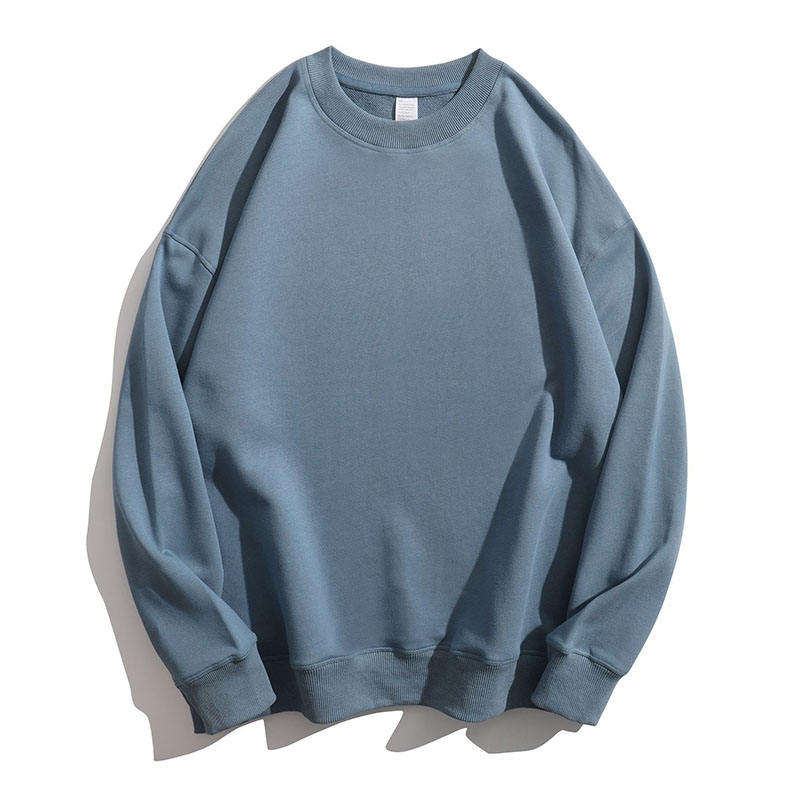 เสื้อสเวตเชิ้ตคอกลมโอเวอร์ไซส์ผ้าฝ้ายสีพื้นแบบกำหนดเองขายส่งสำหรับผู้ชายและผู้หญิง