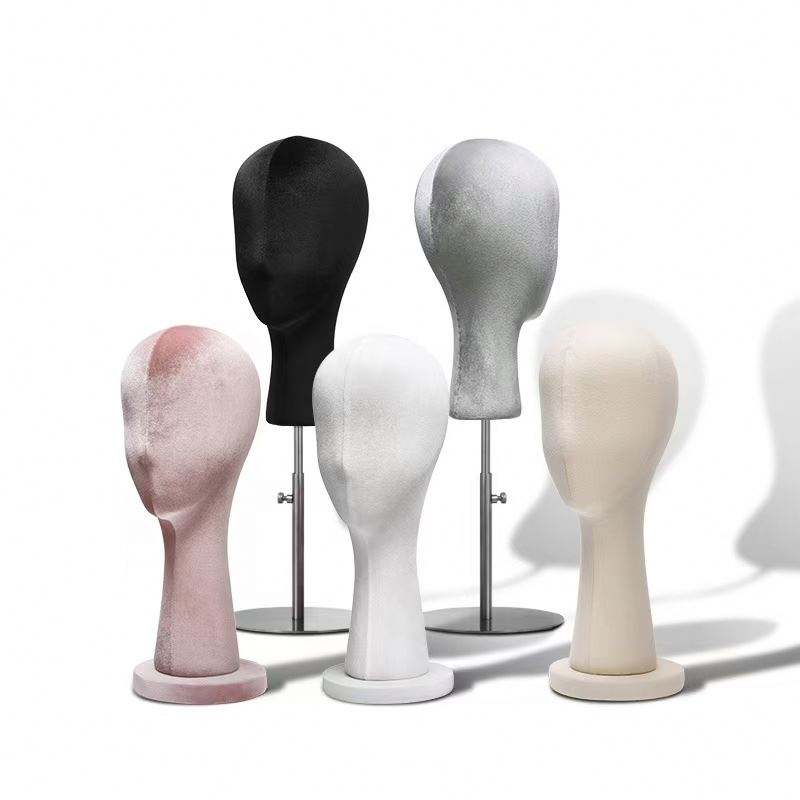 หุ่นโชว์วิกผมผู้หญิงแบบกำมะหยี่ โฟม ผ้า สำหรับร้านเสริมสวย สีตามสั่ง ขายส่ง