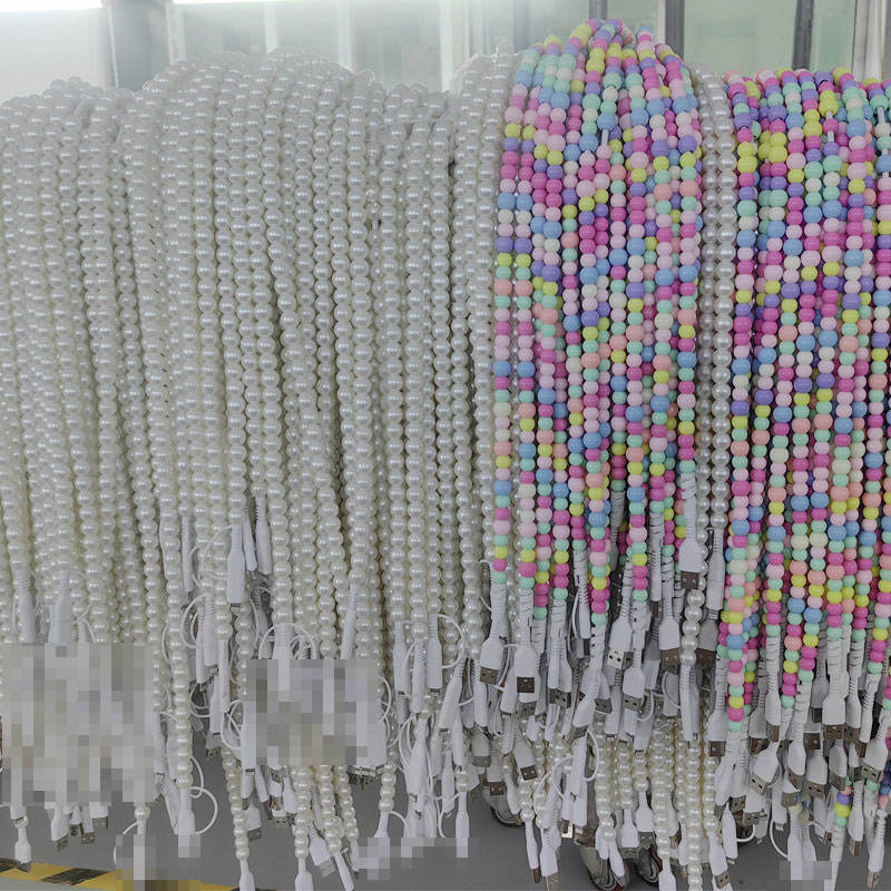 สายชาร์จแบบลูกปัดหลากสีสันสั่งทำขายส่ง 2 in 1 สายดาต้าแบบลูกปัด
