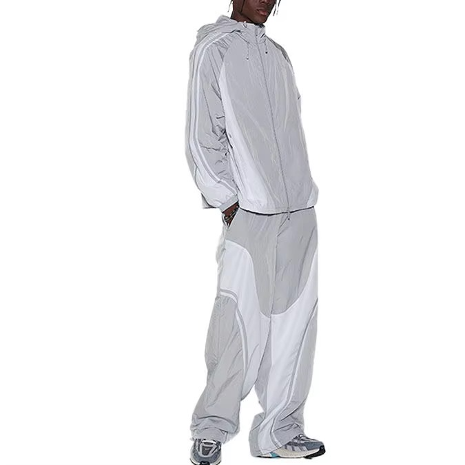 ชุดวอร์มผ้าไนลอนสะท้อนแสงโลโก้สีคมชัดแบบกำหนดเองเสื้อกันลมสำหรับผู้ชายและผู้หญิงคุณภาพพรีเมียมใหม่สำหรับใช้ในบ้าน