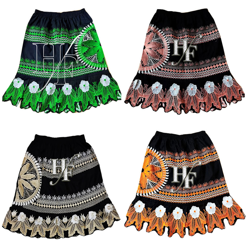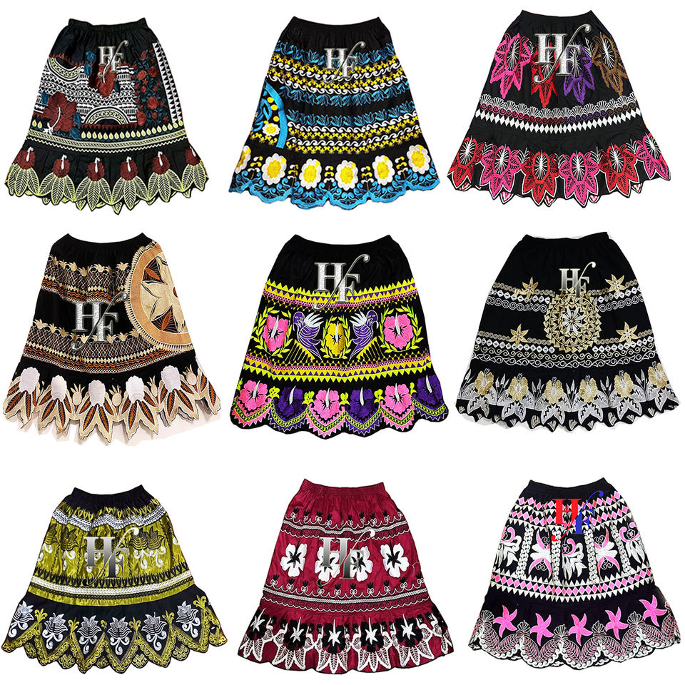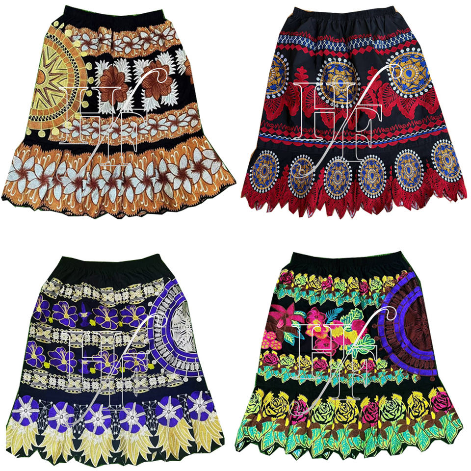 กระโปรงผ้าฝ้ายผสมโพลีเอสเตอร์สั่งทำขายส่ง สไตล์ชนเผ่าไมโครนีเซีย ปักลายสำหรับผู้หญิง