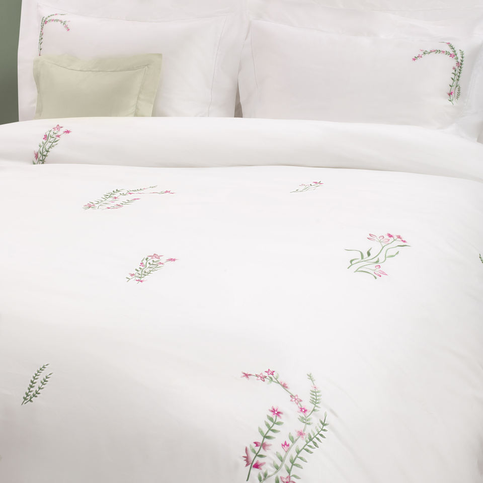 ชุดเครื่องนอนผ้าซาตินคอตตอนสั่งทำขายส่ง ปักลายดอกไม้สวยงาม ปลอกผ้านวม ปลอกหมอน ใช้ได้ทั้งที่บ้าน โรงแรม งานแต่งงาน