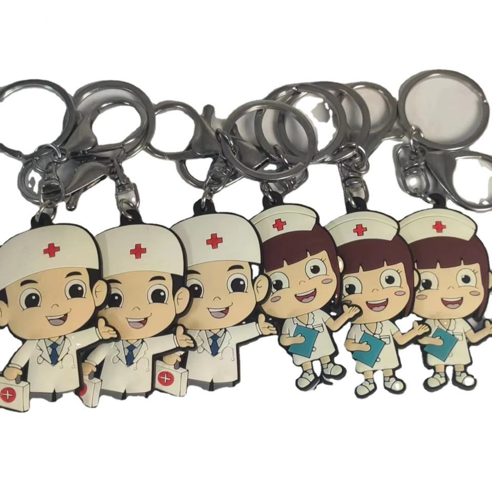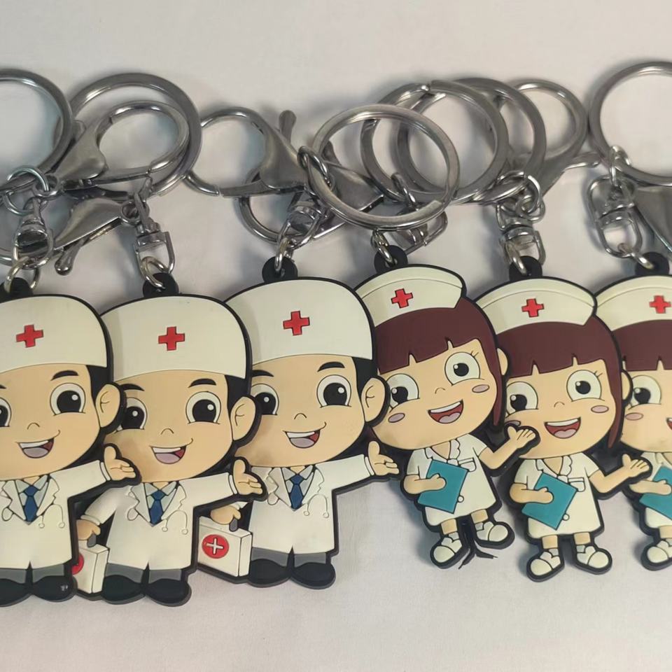 พวงกุญแจซิลิโคนน่ารักแบบขายส่ง พวงกุญแจการ์ตูนแพทย์และพยาบาล 3 มิติ พีวีซี ตุ๊กตาห้อยกระเป๋าสุดน่ารัก พวงกุญแจรูปแพนด้า