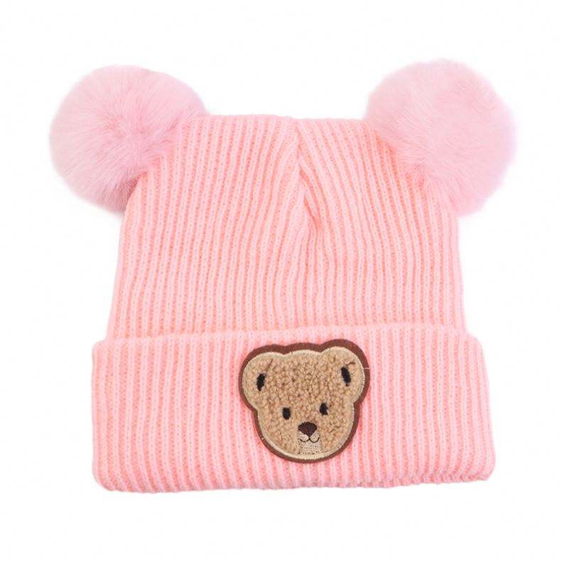 หมวกบีนนี่ปอมปอมคู่สำหรับฤดูหนาว0-5ปีสำหรับเด็กทารกใส่ได้ทั้งชายและหญิงอบอุ่นผ้าฟลีซซับในรูปหมี