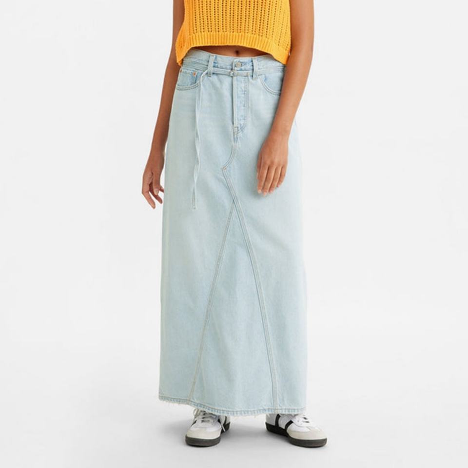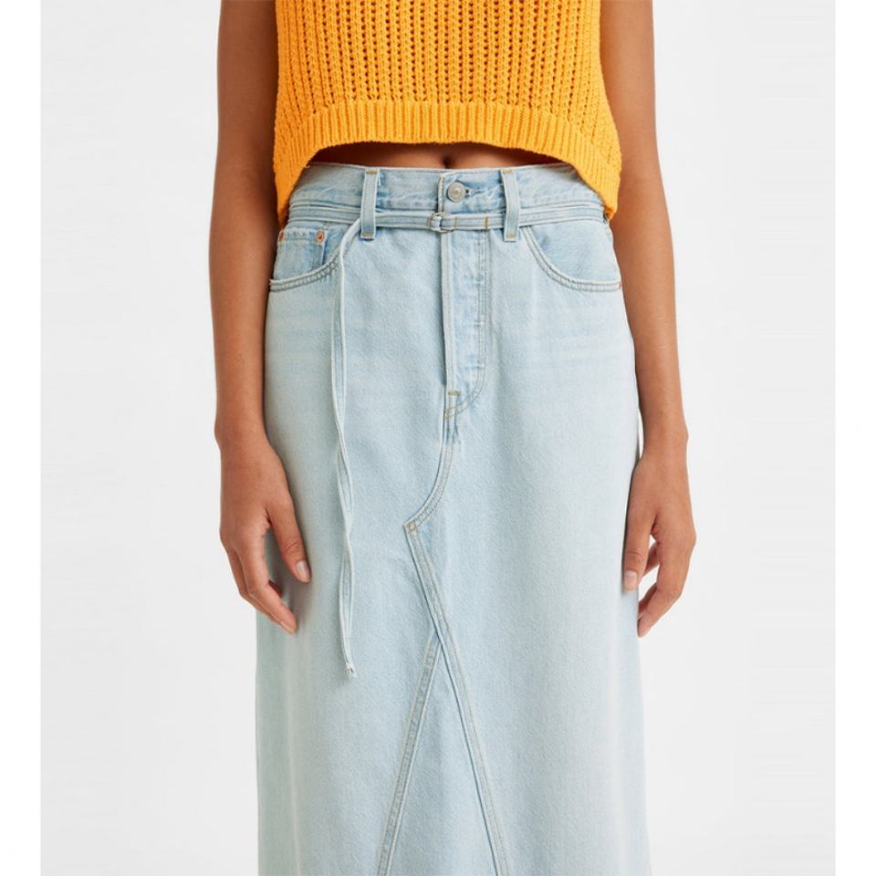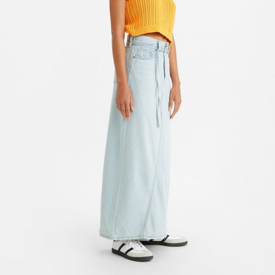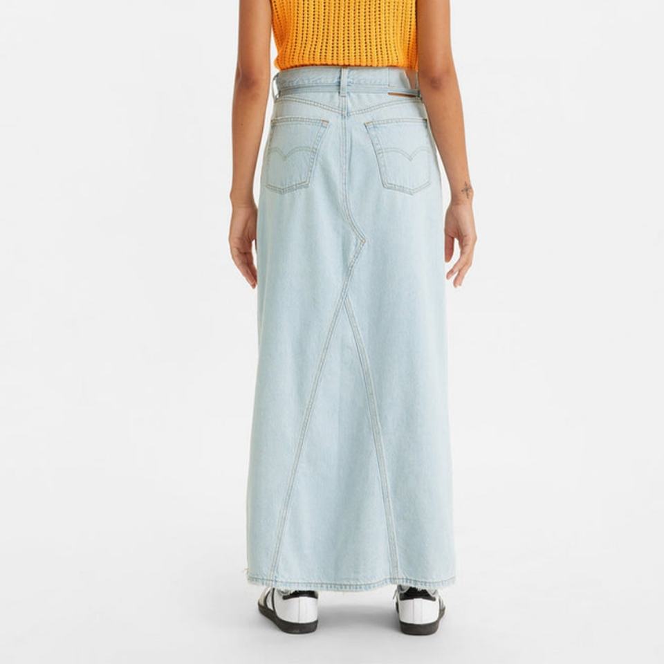 กระโปรงยีนส์แม็กซี่สั่งทำขายส่ง ผ้าฝ้าย 100% สีฟ้าอ่อนสไตล์วินเทจ ยีนส์ฟอก กระโปรงยีนส์ยาวลำลองสำหรับผู้หญิง