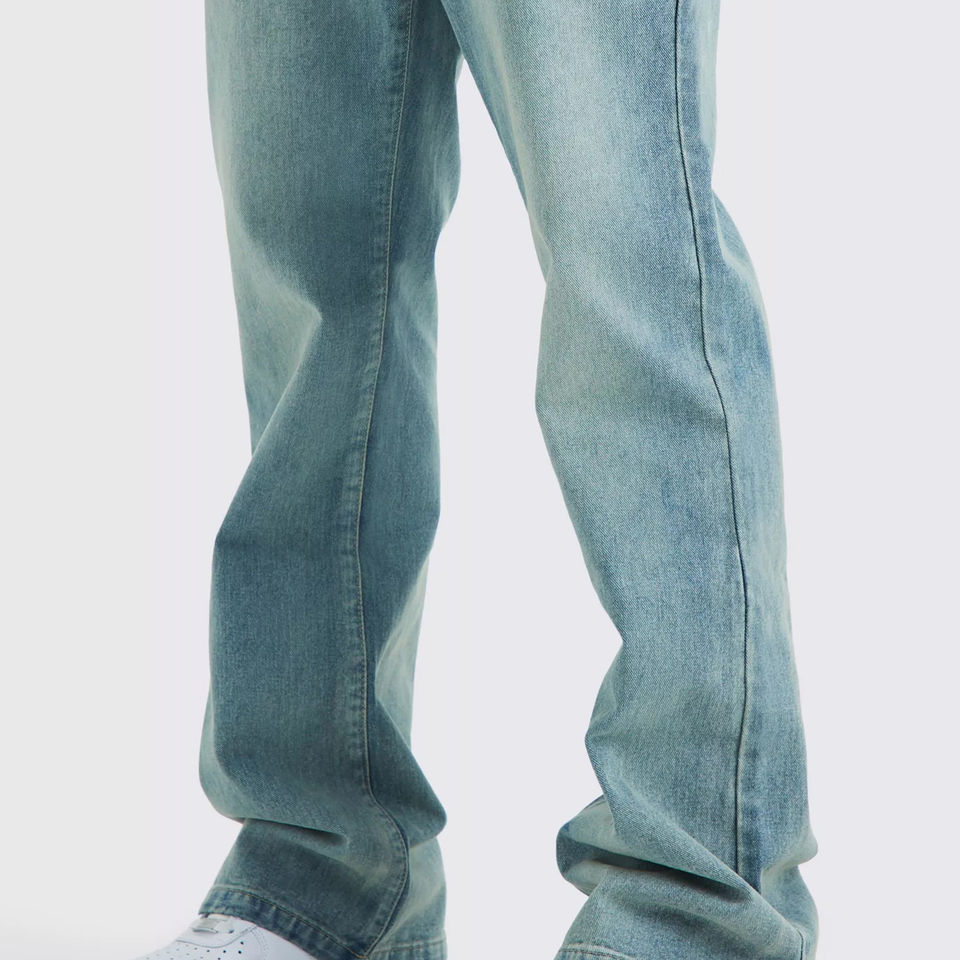 กางเกงยีนส์ขาบานสำหรับผู้ชายกางเกงผ้าเดนิมฮิปฮอปทรงหลวมขาบานออกแบบได้ตามต้องการ