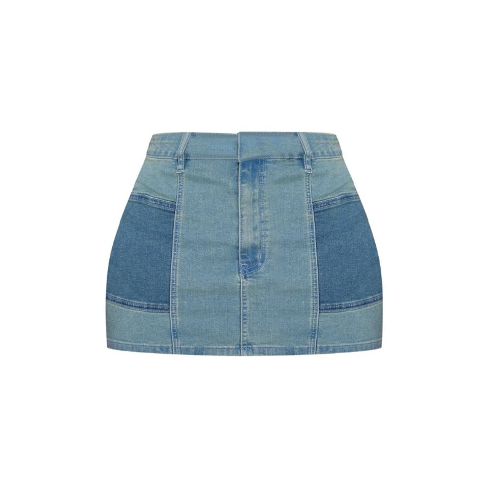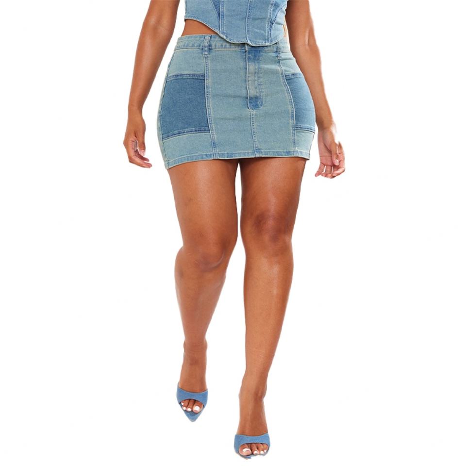 กระโปรงยีนส์สั่งทำขายส่งสำหรับผู้หญิง คุณภาพสูง ผ้าฝ้าย 100% สไตล์วินเทจ สีฟ้าอ่อนฟอก เอวสูง กระโปรงสั้นผู้หญิง