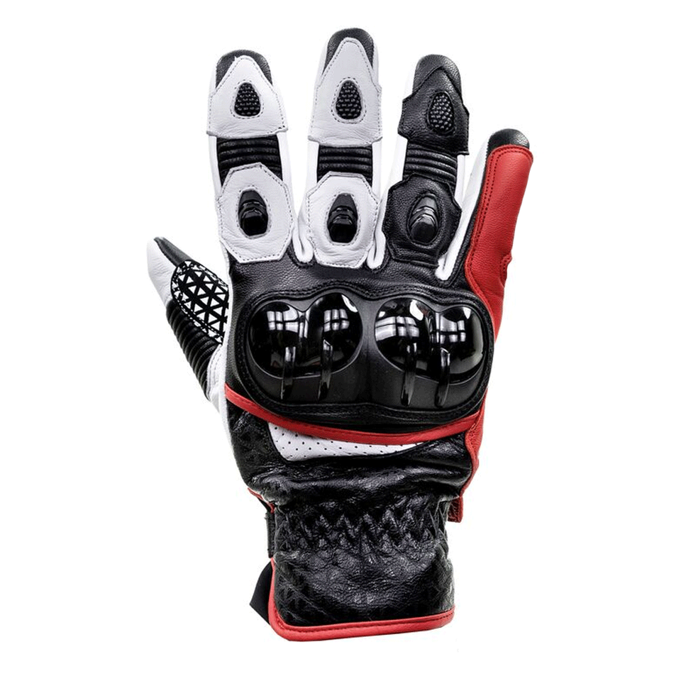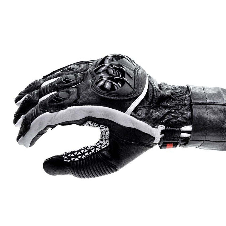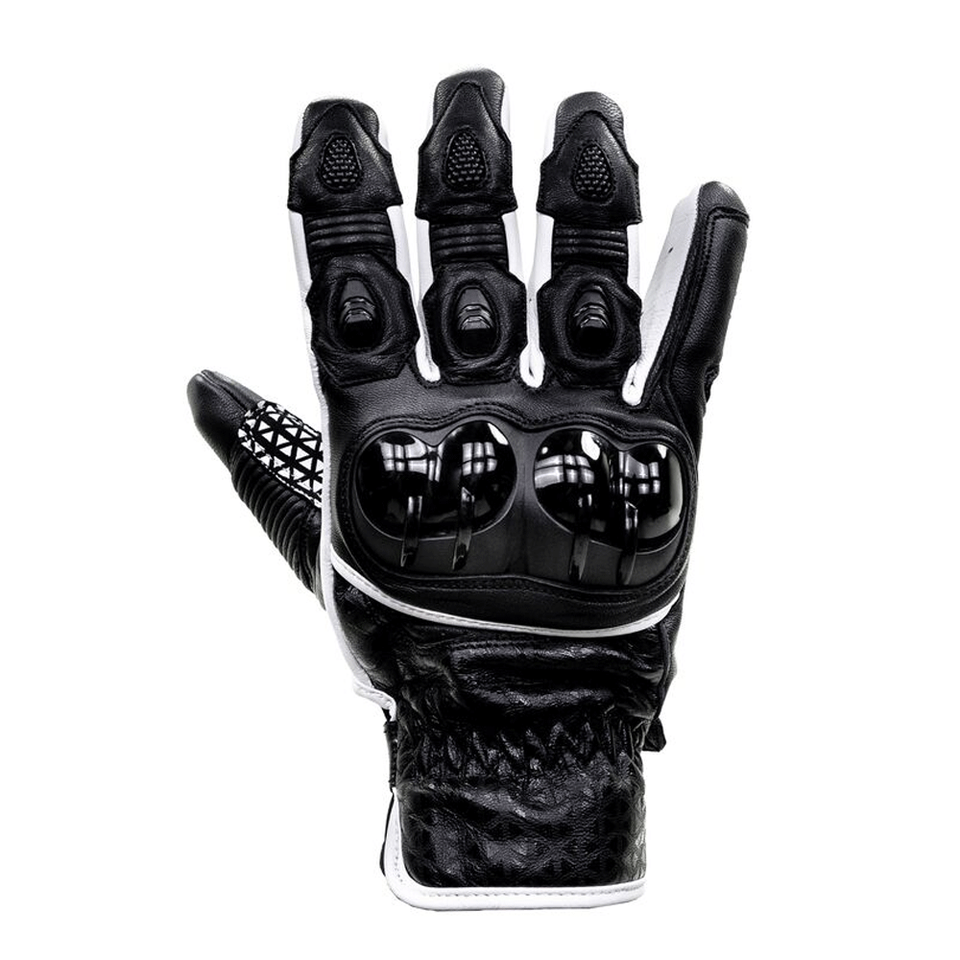 ถุงมือมอเตอร์ไซด์ผู้ชายสีขาว/ดำหนังแพะแท้กันน้ำชุดกีฬารถจักรยานยนต์ชุดแข่งรถ