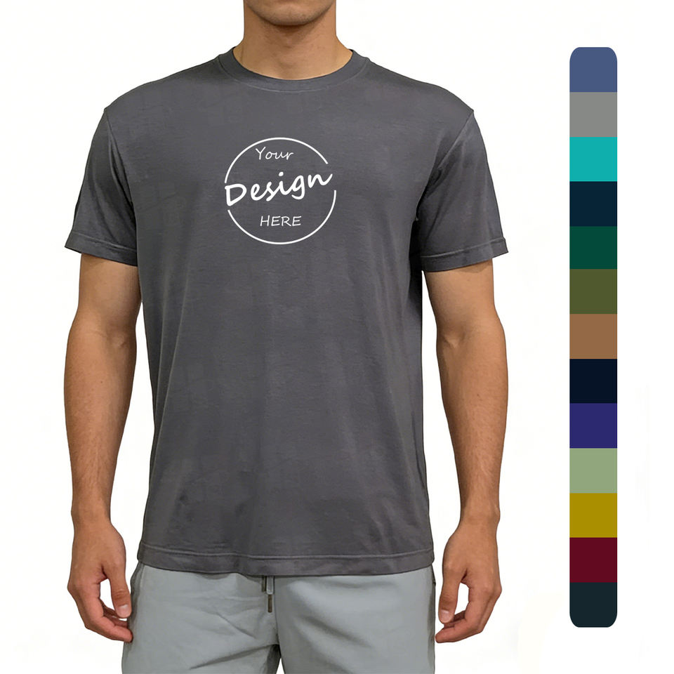 เสื้อยืดผู้ชายทรงปกติ ผ้าเนื้อนุ่มสบาย ออกแบบตามสั่ง ขายส่ง ผลิตจากผ้าไผ่ 95% สแปนเด็กซ์ 5% แขนสั้น ผ้าฝ้าย