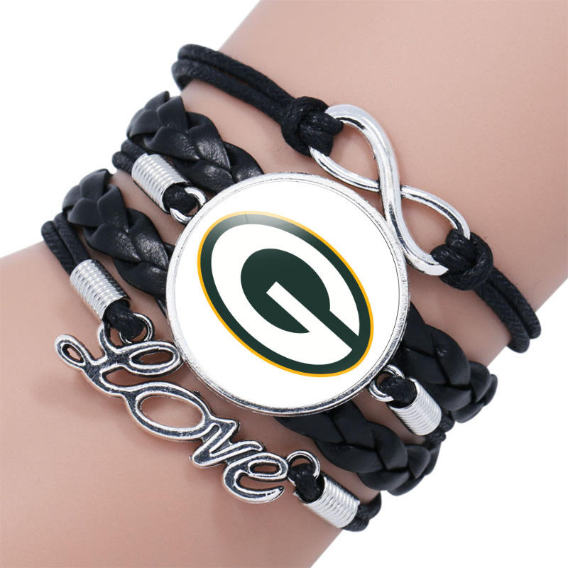 ขายส่งกำไลข้อมือหนัง PU แบบกำหนดเอง ออกแบบเอง แบรนด์ส่วนตัว ลายทีมฟุตบอลอเมริกัน 32 ทีม NFL