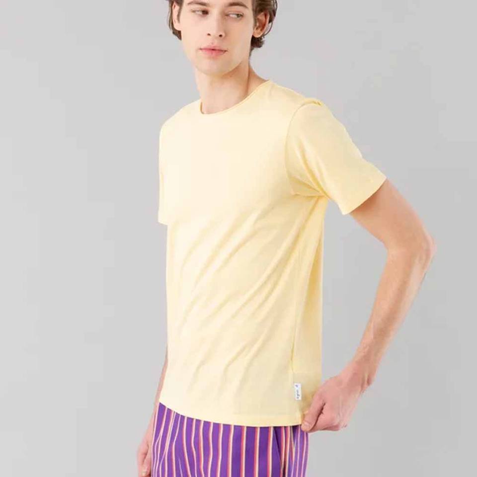 เสื้อยืดแขนสั้นผ้าฝ้ายเยื่อไผ่พิมพ์ลายปล่อยชายเป็นมิตรกับสิ่งแวดล้อม