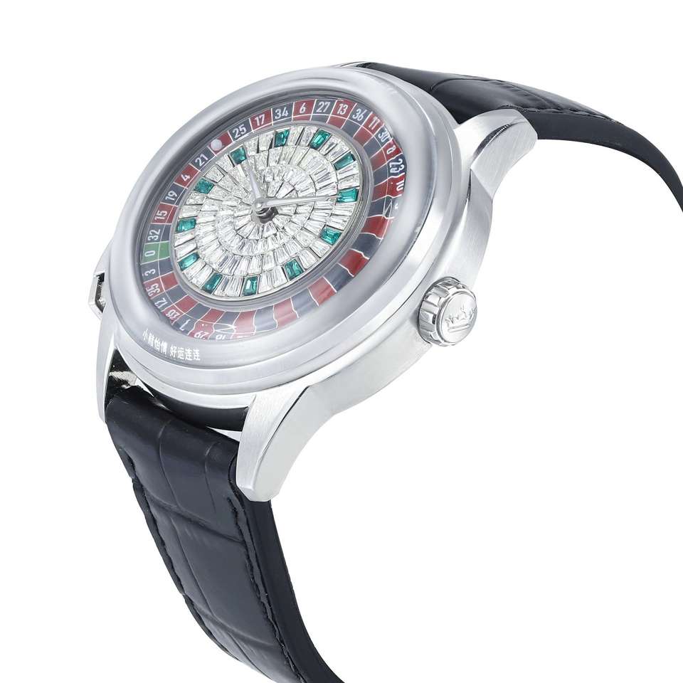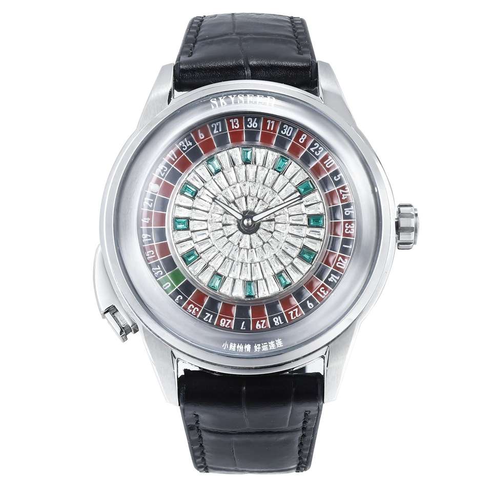 นาฬิกาข้อมือผู้ชายแบบกลไก หมุนวงล้อแบบรูเล็ต หน้าปัดเพชรสั่งทำพิเศษ ขายส่ง ตัวเรือนสแตนเลสกันน้ำ