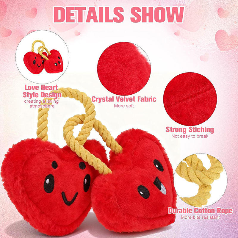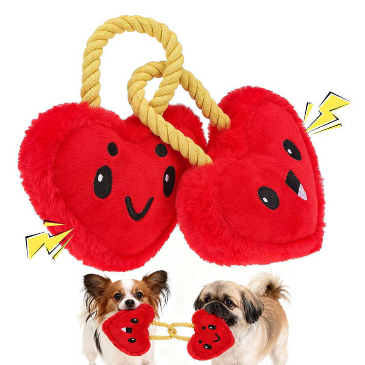 ของเล่นสุนัขแบบขายส่ง ของเล่นเสียงดังรูปหัวใจสีแดง ของเล่นเชือกตุ๊กตาสุนัขแบบมีเสียงดัง ของเล่นดึงเชือกทำความสะอาดฟัน