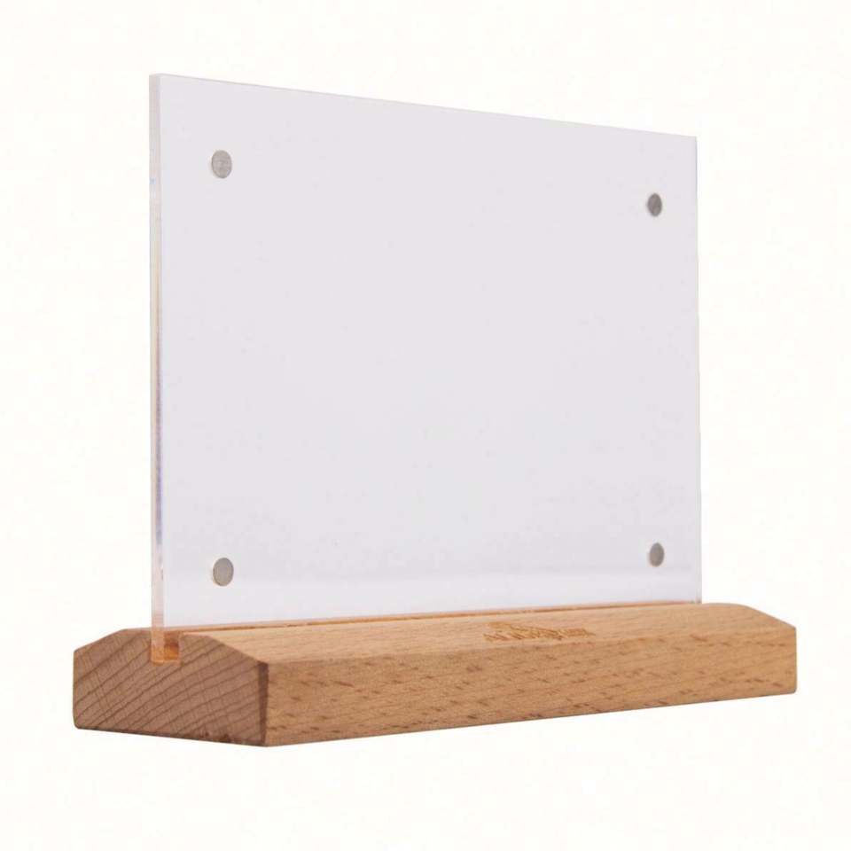 ป้ายอะคริลิคตั้งโต๊ะสองด้านแบบกำหนดเองสำหรับขายส่ง พร้อมที่ใส่การ์ดเมนูและขาตั้งโชว์