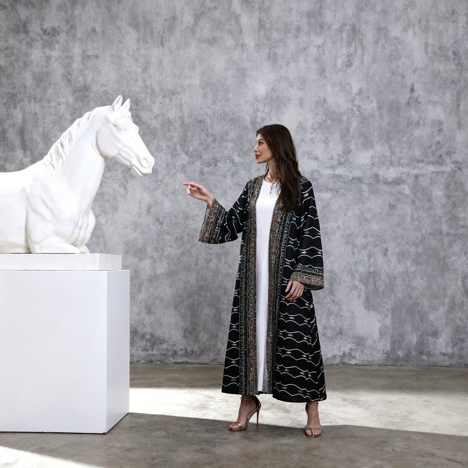 ชุดเดรสอาบายะสำหรับผู้หญิงมุสลิม พิมพ์ลายหรูหรา ประดับด้วยคริสตัลแบบติดร้อน ผลิตตามสั่งขายส่ง