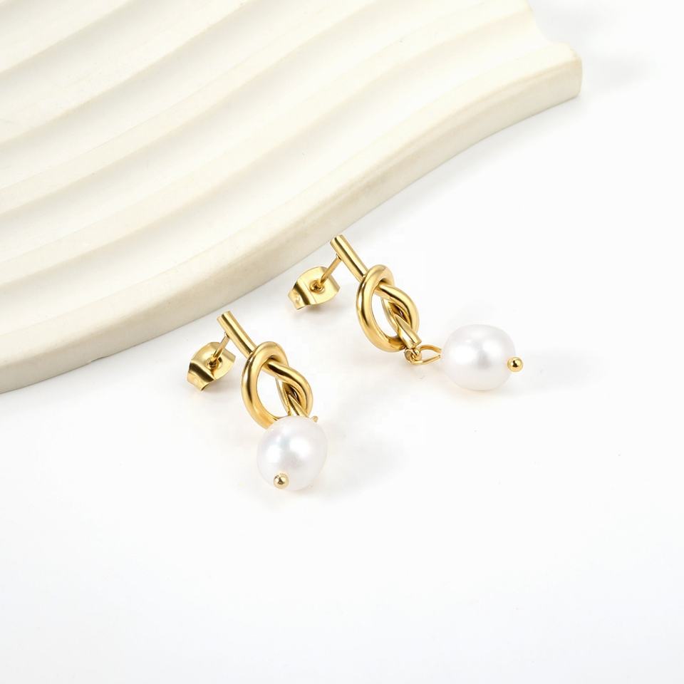 ต่างหูมุกทรงหยดน้ำดีไซน์เก๋ ประดับมุกแท้ ชุบทอง 18K บนสแตนเลสสตีล สำหรับผู้หญิง ขายส่งและรับสั่งทำตามแบบ