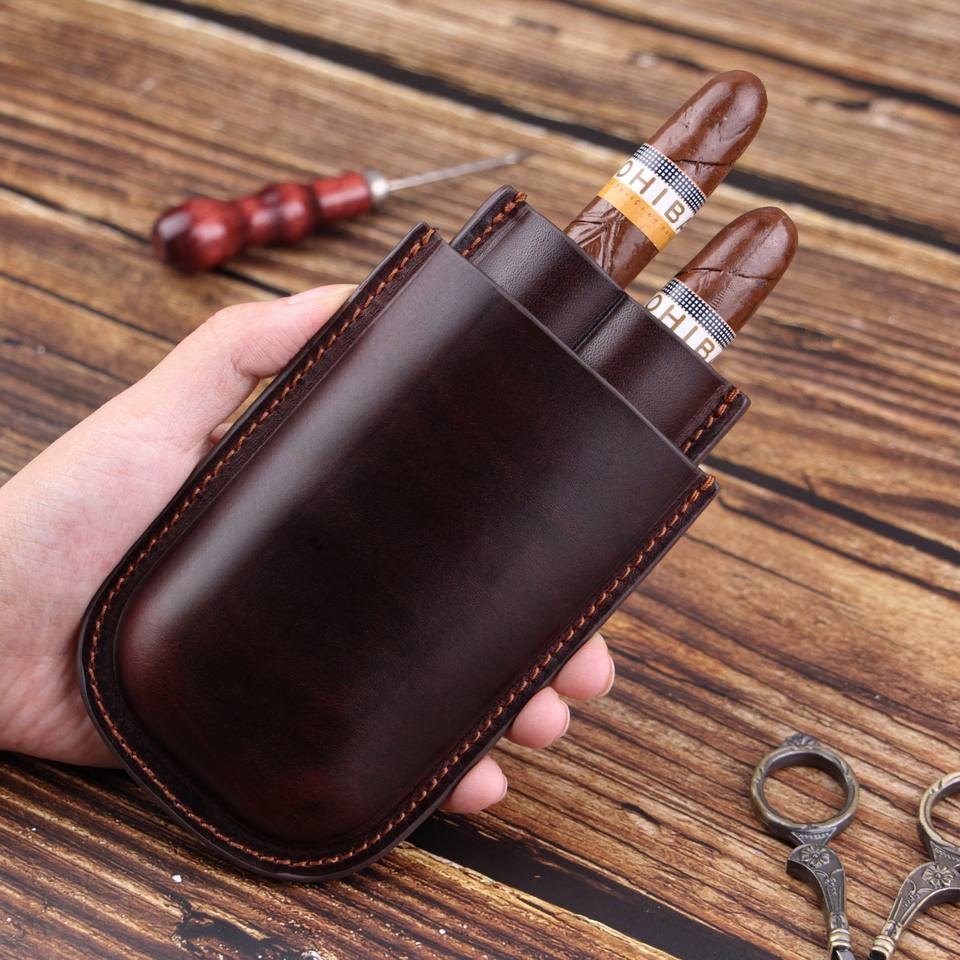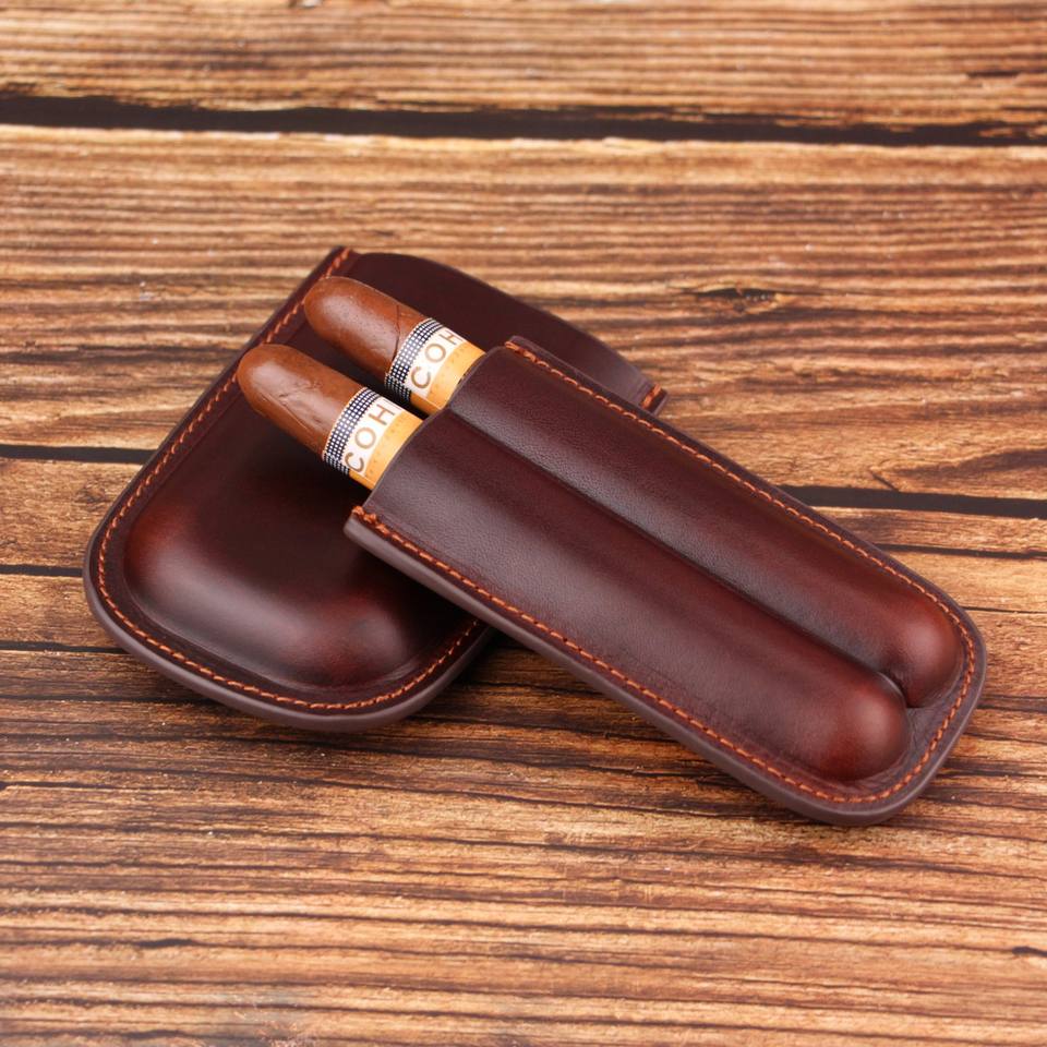 กล่องเก็บซิการ์แท้แบบพกพากล่องตัดไฟแช็คกล่องใส่ซิการ์กล่องเก็บของสำหรับเดินทางทำจากหนังแท้หรูหรามีโลโก้สลักลายนูนออกแบบได้ตามต้องการ