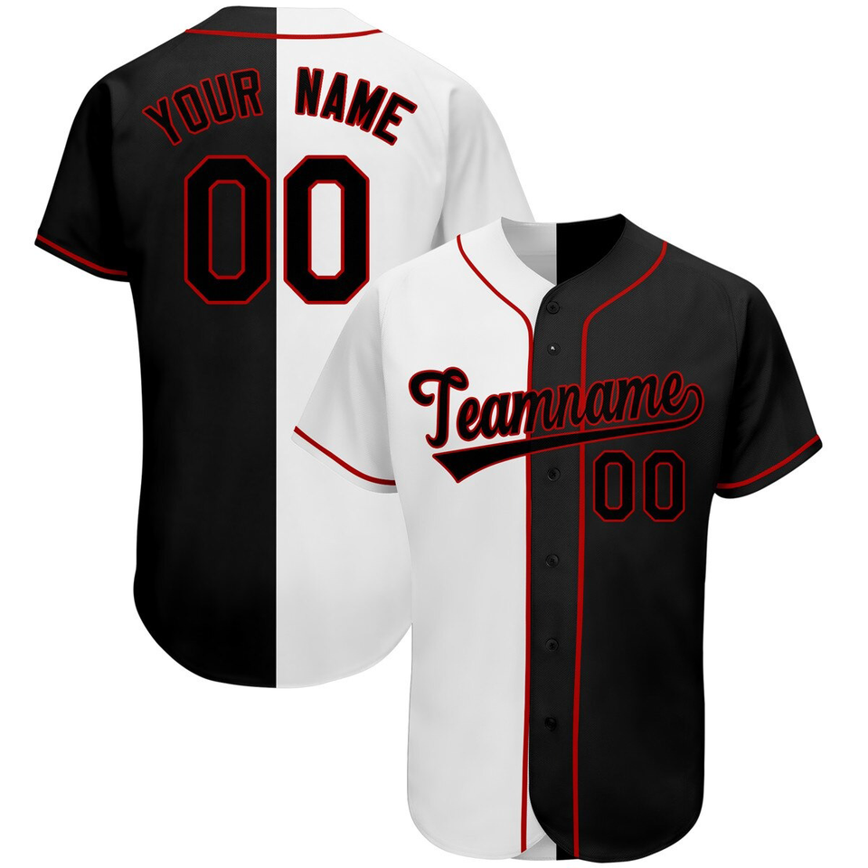ชุดกีฬาระบายอากาศสำหรับผู้ชายเสื้อเบสบอลปักลายสีขาวดำออกแบบโลโก้ได้ตามต้องการ
