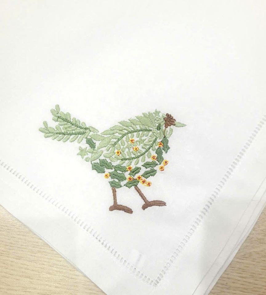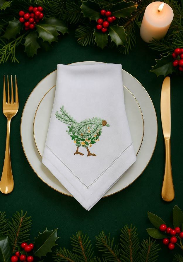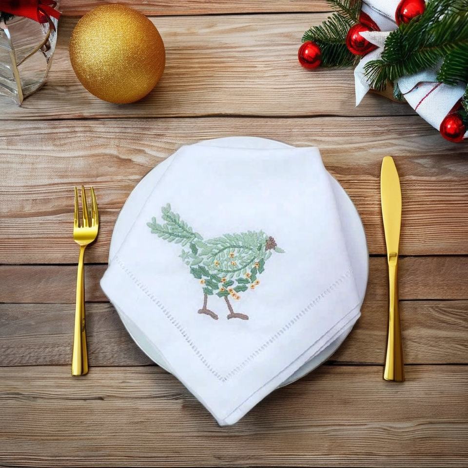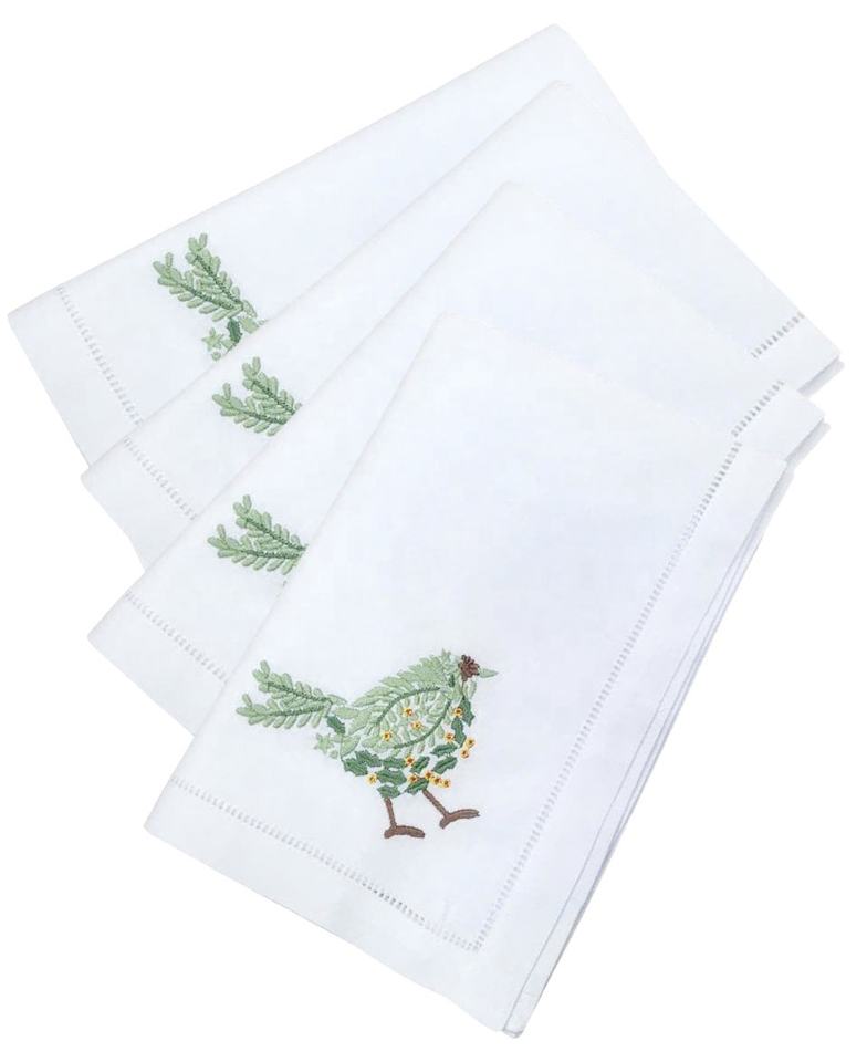 ผ้าเช็ดปากผ้าฝ้ายลายนกสีเขียวปักตามสั่งสำหรับบ้านหรือโรงแรมใช้ตกแต่งโต๊ะอาหารค่ำในเทศกาลคริสต์มาสตกแต่งวันหยุด