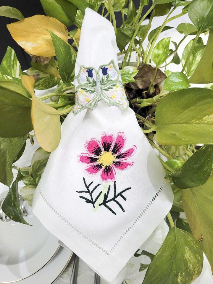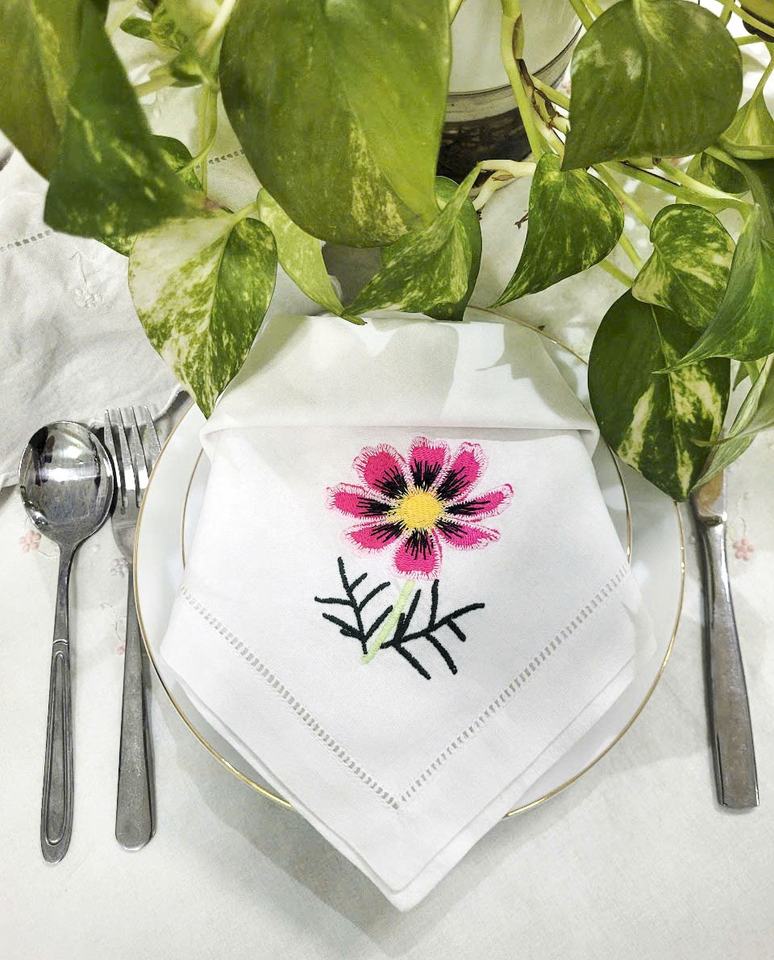 ผ้าเช็ดปากบนโต๊ะอาหารผ้าเย็บริมผ้าทำจากผ้าฝ้ายลายดอกไม้สีชมพูน่ารักงานปักตามสั่งสำหรับบ้านโรงแรมงานแต่งงาน