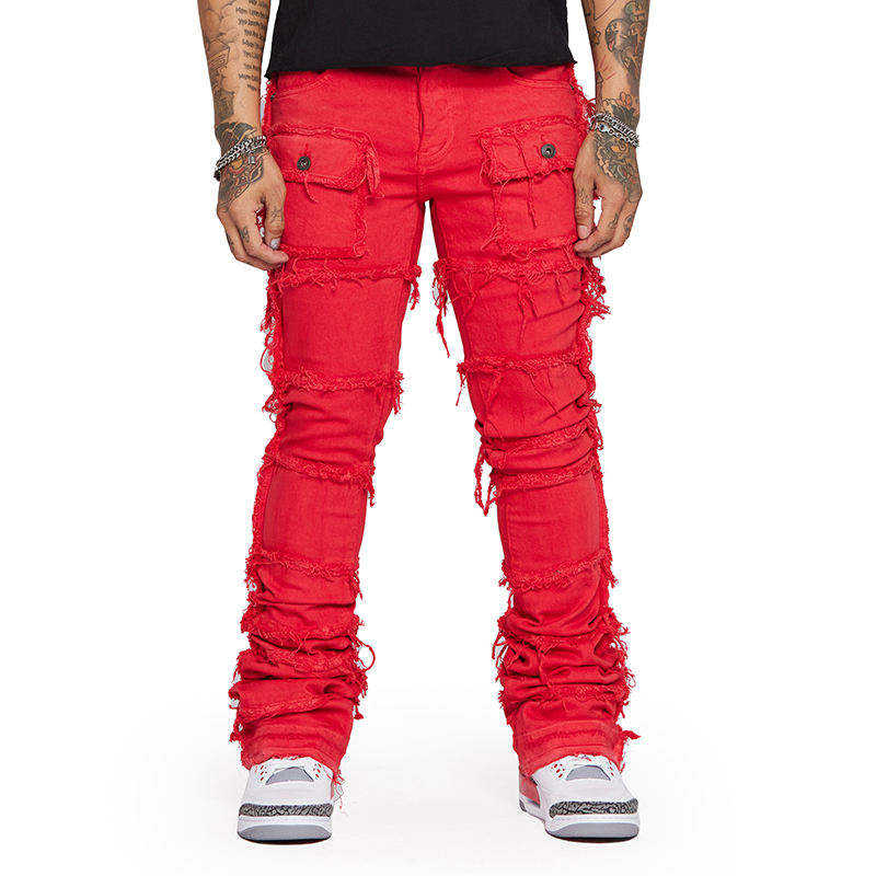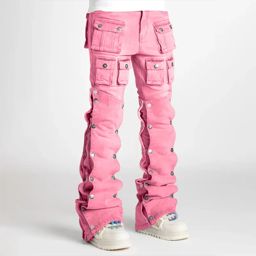 กางเกงยีนส์คาร์โก้ขายส่งแบบสั่งทำปักลายปะติดปะต่อ สไตล์สตรีทแวร์ หลายกระเป๋า กันลม ทรงขากว้างสำหรับผู้ชาย เป็นมิตรกับสิ่งแวดล้อม เหมาะสำหรับฤดูหนาว