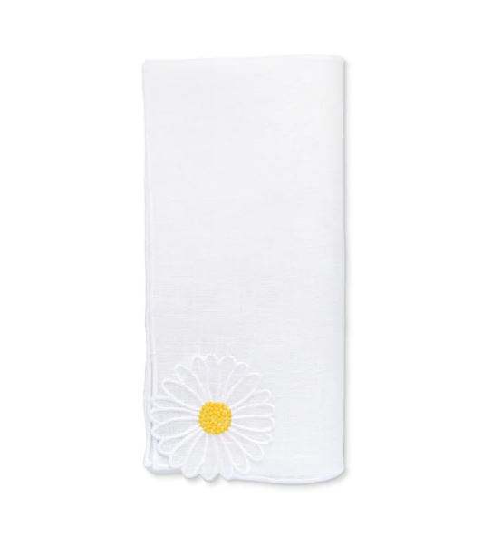 ผ้าเช็ดปากบนโต๊ะลายดอกเดซี่แบบปักลวดลายสวยงามผ้าเช็ดปากผ้าฝ้ายสีขาวผ้าเช็ดปากสำหรับอาหารค่ำโรงแรมงานแต่งงานงานที่บ้าน
