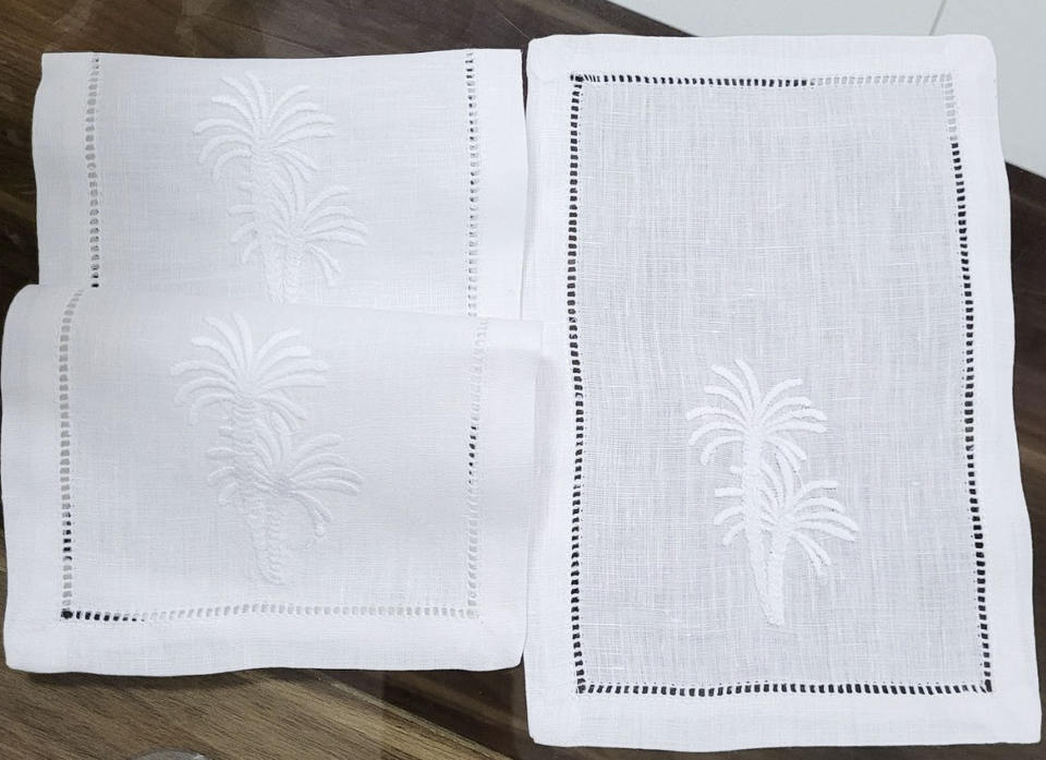 ผ้าเช็ดปากค๊อกเทลผ้าลินินคุณภาพสูงลายต้นปาล์มปักตามสั่ง6x9 "สำหรับบาร์บ้าน