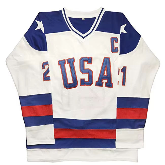 เสื้อเจอร์ซีย์ฮ็อกกี้น้ำแข็งผ้าเจอร์ซี่ปักลาย100% ผ้าโพลีเอสเตอร์