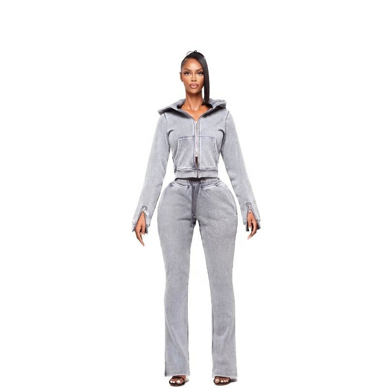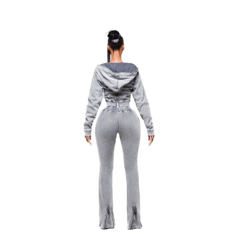 ชุดวอร์มของผู้หญิงชุดครอปแบบกรดซักได้โลโก้ปักตามสั่ง