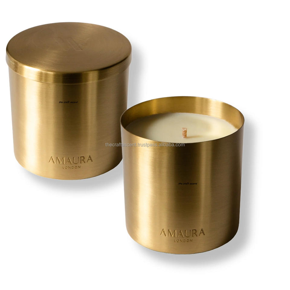 โหลเทียนทองเหลืองสำหรับตกแต่งคริสต์มาสขี้ผึ้งถั่วเหลืองเทียนหอม