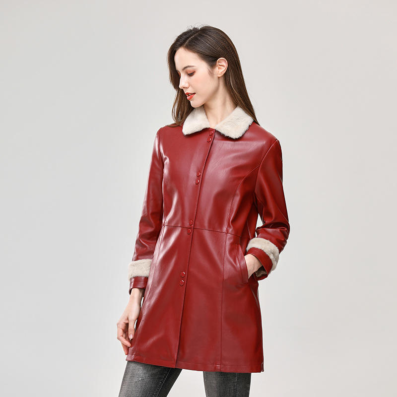 แจ็กเก็ตหนัง Pu สำหรับผู้หญิง,เสื้อโค้ทผ้าฟลีซให้ความอบอุ่นความยาวระดับกลางๆแฟชั่นแบบกำหนดเองสำหรับฤดูหนาว